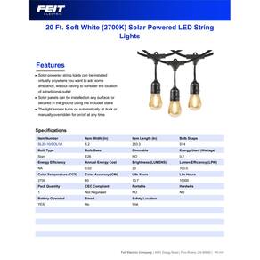 - FÁCIL INSTALAÇÃO: Não há necessidade de ferramentas especiais ou conhecimentos. Basta pendurar as luzes no local desejado usando os clipes ou ganchos incluídos e posicionar o painel solar para máxima exposição ao sol. A Feit Electric Co. oferece produtos de alta qualidade e está comprometida em garantir total satisfação do cliente. Compre com confiança!