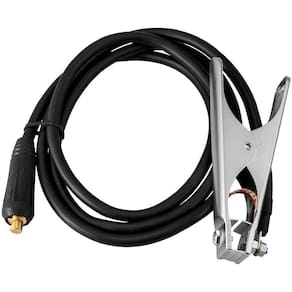 1 conjunto porta-eletrodo (cabo com engate rápido de 13 mm e porta-eletrodo) e 1 conjunto garra obra (cabo com engate rápido de 13 mm e garra obra).