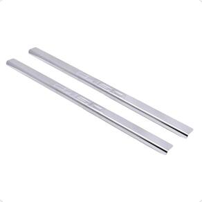 Especificação técnica: Alta resistência. Rigoroso controle de qualidade. Maior cobertura da área das soleiras. Corte e escrito em alto relevo. Identificação do modelo de cada soleira. Não deixa rebarba por ser cortado a laser. Fabricado em aço inox de 1mm de alta qualidade. Fixação por fita dupla face, a melhor do mercado. Tamanho dianteira: 55 cm x 3 cm cxa . Tamanho traseira: 28,5 cm x 3 cm cxa .