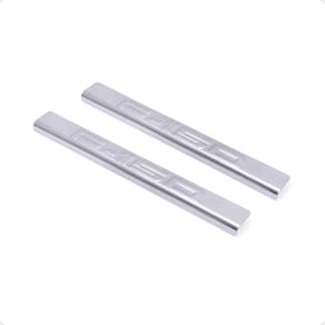 Especificação técnica: Alta resistência. Rigoroso controle de qualidade. Maior cobertura da área das soleiras. Corte e escrito em alto relevo. Identificação do modelo de cada soleira. Não deixa rebarba por ser cortado a laser. Fabricado em aço inox de 1mm de alta qualidade. Fixação por fita dupla face, a melhor do mercado. Tamanho dianteira: 55 cm x 3 cm cxa . Tamanho traseira: 28,5 cm x 3 cm cxa .
