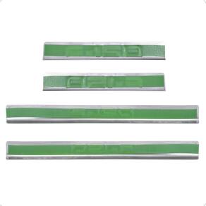 Especificação técnica: Alta resistência. Rigoroso controle de qualidade. Maior cobertura da área das soleiras. Corte e escrito em alto relevo. Identificação do modelo de cada soleira. Não deixa rebarba por ser cortado a laser. Fabricado em aço inox de 1mm de alta qualidade. Fixação por fita dupla face, a melhor do mercado. Tamanho dianteira: 55 cm x 3 cm cxa . Tamanho traseira: 28,5 cm x 3 cm cxa .