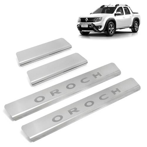 sobre o produto: pelo fato de ser produzida em aço inoxidável, esta soleira é super-resistente e não enferruja. Especificação técnica: alta resistência. Rigoroso controle de qualidade. Maior cobertura da área das soleiras. Corte e escrito em alto relevo. Identificação do modelo de cada soleira. Não deixa rebarba por ser cortado a laser. Fabricado em aço inox de 1mm de alta qualidade. Fixação por fita dupla face, a melhor do mercado. Tamanho dianteira: 44 cm x 6 cm cxa . Tamanho traseira: 20 cm x 6 cm cxa . Conteúdo da embalagem: 02 soleiras dianteiras. 02 soleiras traseiras. Compatível com: renault oroch 2016 à 2019 compatível para todas as versões