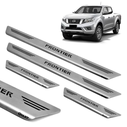pelo fato de ser produzida em aço inoxidável, esta soleira é super-resistente e não enferruja. A instalação é fácil, e pode ser feita em casa sem nenhum problema. A fixação é personalizada, é feita com fita 3m especial, que não altera a espessura do produto, garantindo assim excelente durabilidade sem causar danos ao seu veículo. A soleira de porta protege seu carro contra riscos, além de proporcionar um visual esportivo para o automóvel, pois é personalizado e fabricado sob medida para cada veículo com alto padrão de tecnologia e matéria prima. Especificações: alta resistência. Rigoroso controle de qualidade. Maior cobertura da área das soleiras. Corte e gravação a laser. Identificação do modelo de cada soleira. Não deixa rebarba por ser cortado a laser. Fabricado em aço inox escovado de 0,6mm de alta qualidade. Fixação por fita dupla face 3m, a melhor do mercado. Tamanho dianteira : 50 cm x 5 cm cxa . Tamanho traseira : 25 cm x 5 cm cxa . Conteúdo da embalagem: 02 - soleiras dianteiras. 02 - soleiras traseiras. Compatível com: nissan frontier 2012 à 2022 compatível para todas as versões