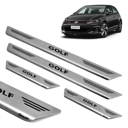 Pelo fato de ser produzida em ao inoxid vel, esta soleira super-resistente e no enferruja. A instalao f cil, e pode ser feita em casa sem nenhum problema. A fixao personalizada, feita com fita 3m especial, que no altera a espessura do produto, garantindo assim excelente durabilidade sem causar danos ao seu veculo. A soleira de porta protege seu carro contra riscos, alm de proporcionar um visual esportivo para o automvel, pois personalizado e fabricado sob medida para cada veculo com alto padro de tecnologia e matria prima. Especificaes: alta resistncia. Rigoroso controle de qualidade. Maior cobertura da rea das soleiras. Corte e gravao a laser. Identificao do modelo de cada soleira. No deixa rebarba por ser cortado a laser. Fabricado em ao inox escovado de 0,6mm de alta qualidade. Fixao por fita dupla face 3m, a melhor do mercado. Tamanho dianteira : 50 cm x 5 cm cxa . Tamanho traseira : 20 cm x 5 cm cxa . Contedo da embalagem: 02 - soleiras dianteiras. 02 - soleiras traseiras. Compatvel com: volkswagen golf 2014. . . 2022 compatvel para todas as verses