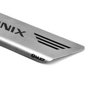 pelo fato de ser produzida em aço inoxidável, esta soleira é super-resistente e não enferruja. A instalação é fácil, e pode ser feita em casa sem nenhum problema. A fixação é personalizada, é feita com fita 3m especial, que não altera a espessura do produto, garantindo assim excelente durabilidade sem causar danos ao seu veículo. A soleira de porta protege seu carro contra riscos, além de proporcionar um visual esportivo para o automóvel, pois é personalizado e fabricado sob medida para cada veículo com alto padrão de tecnologia e matéria prima. Especificações: alta resistência. Rigoroso controle de qualidade. Maior cobertura da área das soleiras. Corte e gravação a laser. Identificação do modelo de cada soleira. Não deixa rebarba por ser cortado a laser. Fabricado em aço inox escovado de 0,6mm de alta qualidade. Fixação por fita dupla face 3m, a melhor do mercado. Tamanho dianteira : 50 cm x 05 cm cxa . Tamanho traseira : 20 cm x 05 cm cxa . Conteúdo da embalagem: 02 - soleiras dianteiras. 02 - soleiras traseiras. Compatível com: chevrolet onix plus 2021 à 2022 compatível para todas as versões do modelo plus