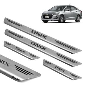 pelo fato de ser produzida em aço inoxidável, esta soleira é super-resistente e não enferruja. A instalação é fácil, e pode ser feita em casa sem nenhum problema. A fixação é personalizada, é feita com fita 3m especial, que não altera a espessura do produto, garantindo assim excelente durabilidade sem causar danos ao seu veículo. A soleira de porta protege seu carro contra riscos, além de proporcionar um visual esportivo para o automóvel, pois é personalizado e fabricado sob medida para cada veículo com alto padrão de tecnologia e matéria prima. Especificações: alta resistência. Rigoroso controle de qualidade. Maior cobertura da área das soleiras. Corte e gravação a laser. Identificação do modelo de cada soleira. Não deixa rebarba por ser cortado a laser. Fabricado em aço inox escovado de 0,6mm de alta qualidade. Fixação por fita dupla face 3m, a melhor do mercado. Tamanho dianteira : 50 cm x 05 cm cxa . Tamanho traseira : 20 cm x 05 cm cxa . Conteúdo da embalagem: 02 - soleiras dianteiras. 02 - soleiras traseiras. Compatível com: chevrolet onix plus 2021 à 2022 compatível para todas as versões do modelo plus
