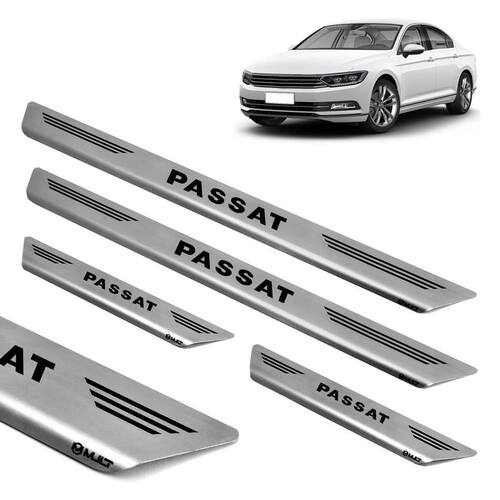 pelo fato de ser produzida em aço inoxidável, esta soleira é super-resistente e não enferruja. A instalação é fácil, e pode ser feita em casa sem nenhum problema. A fixação é personalizada, é feita com fita 3m especial, que não altera a espessura do produto, garantindo assim excelente durabilidade sem causar danos ao seu veículo. A soleira de porta protege seu carro contra riscos, além de proporcionar um visual esportivo para o automóvel, pois é personalizado e fabricado sob medida para cada veículo com alto padrão de tecnologia e matéria prima. Especificações: alta resistência. Rigoroso controle de qualidade. Maior cobertura da área das soleiras. Corte e gravação a laser. Identificação do modelo de cada soleira. Não deixa rebarba por ser cortado a laser. Fabricado em aço inox escovado de 0,6mm de alta qualidade. Fixação por fita dupla face 3m, a melhor do mercado. Tamanho dianteiro: 50 cm x 4,5 cm cxa . Tamanho traseira: 25 cm x 4,5 cm cxa . Conteúdo da embalagem: 02 - soleiras dianteiras. 02 - soleiras traseiras. Compatível com: volkswagen passat 2011 à 2020 compatível para todas as versões