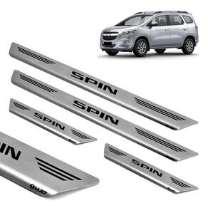pelo fato de ser produzida em aço inoxidável, esta soleira é super-resistente e não enferruja. A instalação é fácil, e pode ser feita em casa sem nenhum problema. A fixação é personalizada, é feita com fita 3m especial, que não altera a espessura do produto, garantindo assim excelente durabilidade sem causar danos ao seu veículo. A soleira de porta protege seu carro contra riscos, além de proporcionar um visual esportivo para o automóvel, pois é personalizado e fabricado sob medida para cada veículo com alto padrão de tecnologia e matéria prima. Especificações: alta resistência. Rigoroso controle de qualidade. Maior cobertura da área das soleiras. Corte e gravação a laser. Identificação do modelo de cada soleira. Não deixa rebarba por ser cortado a laser. Fabricado em aço inox escovado de 0,6mm de alta qualidade. Fixação por fita dupla face 3m, a melhor do mercado. Tamanho dianteiro: 50 cm x 5 cm cxa . Tamanho traseira: 30 cm x 5 cm cxa . Conteúdo da embalagem: 02 - soleiras dianteiras. 02 - soleiras traseiras. Compatível com: chevrolet spin 2013 à 2023 compatível para todas as versões