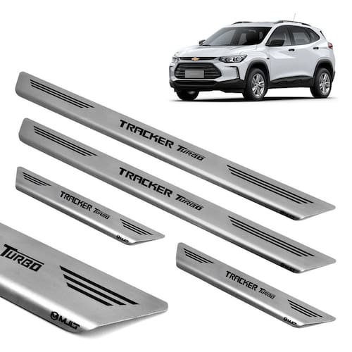 pelo fato de ser produzida em aço inoxidável, esta soleira é super-resistente e não enferruja. A instalação é fácil, e pode ser feita em casa sem nenhum problema. A fixação é personalizada, é feita com fita 3m especial, que não altera a espessura do produto, garantindo assim excelente durabilidade sem causar danos ao seu veículo. A soleira de porta protege seu carro contra riscos, além de proporcionar um visual esportivo para o automóvel, pois é personalizado e fabricado sob medida para cada veículo com alto padrão de tecnologia e matéria prima. Especificações: alta resistência. Rigoroso controle de qualidade. Maior cobertura da área das soleiras. Corte e gravação a laser. Identificação do modelo de cada soleira. Não deixa rebarba por ser cortado a laser. Fabricado em aço inox escovado de 0,6mm de alta qualidade. Fixação por fita dupla face 3m, a melhor do mercado. Tamanho dianteira: 48,5 cm x 4,5 cm cxa . Tamanho traseira : 25 cm x 4,5 cm cxa . Conteúdo da embalagem: 02 - soleiras dianteiras. 02 - soleiras traseiras. Compatível com: chevrolet tracker 2020 à 2023 compatível para todas as versões turbo