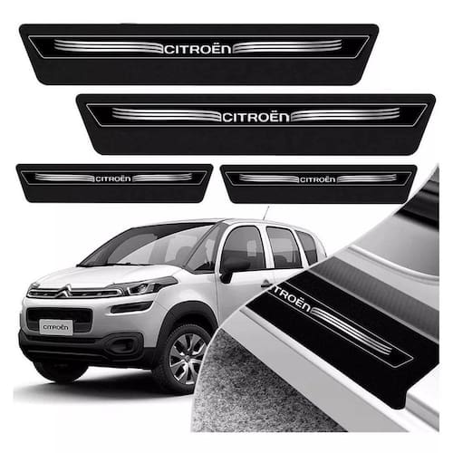 Adesivo Soleira Citroen Todos Modelo Preto Platinum EmblamaTechAlém de fazerem toda a diferença no acabamento do seu Citroen, Esses adesivos para as soleiras das portas trazem proteção essencial para essa região do automóvel absorvendo os impactos dos sapatos dos passageiros e do motorista, evitando riscos. De fácil aplicação, as 4 peças tem verso autoadesivo e são super resistentes, sendo feitas em material resinado durável e com proteção contra ressecamento. Sua cor preta é super moderna e grafia cromada traz um toque de esportividade para o carro. Cor Disponível: Preto com Grafia Cromada Compatível com: Citroen Especificação Técnica: Feito em Material Resinado Resistente Disponível na Cor Preta Detalhes em Cromo de Alto Brilho Personalizados com Grafia da Marca do Carro Fixação por Verso Adesivo Maior Resistência e Proteção para a Soleira da Porta Conteúdo da Embalagem: 04 Adesivos Resinados 04 Adesivos Poroso Dica: A aplicação deve ser feita sobre a superfície limpa e seca. Recomenda-se evitar molhar o veículo pelo período mínimo de 24 horas após a fixação, para garantir a sua estabilidade. Importante: Garantia de 3 meses. Valor do Jogo. Imagens Meramente Ilustrativas. Recomendamos que a instalação seja feita por profissional especializado e não nos responsabilizamos pelo mau uso do produto.