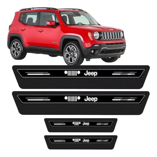 Adesivo Soleira Porta Jeep Todos Modelo Preto Platinum EmblemaTechAlém de fazerem toda a diferença no acabamento do seu Jeep, Esses adesivos para as soleiras das portas trazem proteção essencial para essa região do automóvel absorvendo os impactos dos sapatos dos passageiros e do motorista, evitando riscos. De fácil aplicação, as 4 peças tem verso autoadesivo e são super resistentes, sendo feitas em material resinado durável e com proteção contra ressecamento. Sua cor preta é super moderna e grafia cromada traz um toque de esportividade para o carro. Cor Disponível: Preto com Grafia Cromada Compatível com: Jeep Especificação Técnica: Feito em Material Resinado Resistente Disponível na Cor Preta Detalhes em Cromo de Alto Brilho Personalizados com Grafia da Marca do Carro Fixação por Verso Adesivo Maior Resistência e Proteção para a Soleira da Porta Conteúdo da Embalagem: 04 Adesivos Resinados 04 Adesivos Poroso Dica: A aplicação deve ser feita sobre a superfície limpa e seca. Recomenda-se evitar molhar o veículo pelo período mínimo de 24 horas após a fixação, para garantir a sua estabilidade. Importante:Garantia de 3 meses. Valor do Jogo. Imagens Meramente Ilustrativas. Recomendamos que a instalação seja feita por profissional especializado e não nos responsabilizamos pelo mau uso do produto.