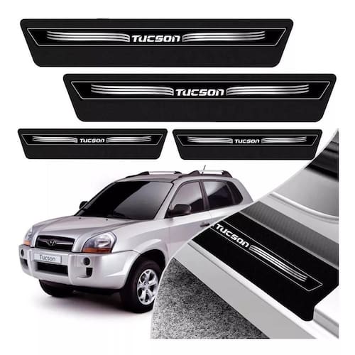 Adesivo Soleira Porta Hyundai Tucson Modelo Preto Platinum EmblemaTech Além de fazerem toda a diferença no acabamento do seu Hyundai Tucson, Esses adesivos para as soleiras das portas trazem proteção essencial para essa região do automóvel absorvendo os impactos dos sapatos dos passageiros e do motorista, evitando riscos. De fácil aplicação, as 4 peças tem verso autoadesivo e são super resistentes, sendo feitas em material resinado durável e com proteção contra ressecamento. Sua cor preta é super moderna e grafia cromada traz um toque de esportividade para o carro. Cor Disponível: Preto com Grafia Cromada Compatível com: Hyundai Tucson Especificação Técnica: Feito em Material Resinado Resistente Disponível na Cor Preta Detalhes em Cromo de Alto Brilho Personalizados com Grafia da Marca do Carro Fixação por Verso Adesivo Maior Resistência e Proteção para a Soleira da Porta Conteúdo da Embalagem: 04 Adesivos Resinados 04 Adesivos Poroso Dica: A aplicação deve ser feita sobre a superfície limpa e seca. Recomenda-se evitar molhar o veículo pelo período mínimo de 24 horas após a fixação, para garantir a sua estabilidade. Importante: de 3 meses. Valor do Jogo. Imagens Meramente Ilustrativas. Recomendamos que a instalação seja feita por profissional especializado e não nos responsabilizamos pelo mau uso do produto. Ean: 7908698107946