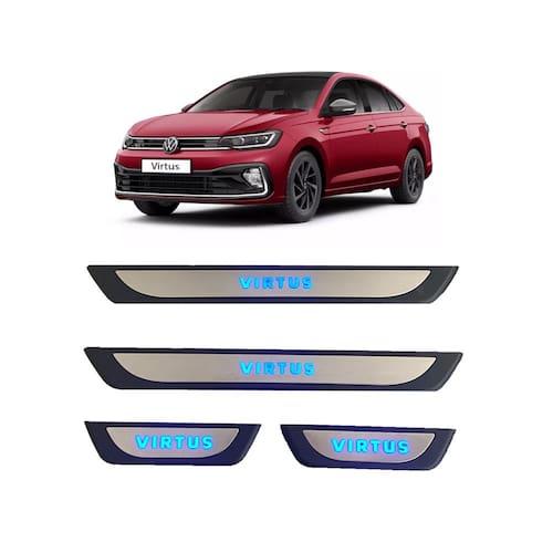 A soleira de aço inox Escovado tem a função de proteger o pisante do seu Virtus ao embarcar ou desembarcar do mesmo, além de proporcionar visual esportivo com grafia personalizada em LED com o nome do Veículo.