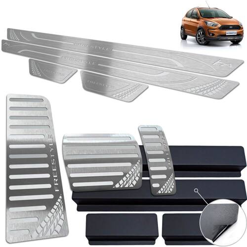 Fabricado em aço inox 304 o kit soleiras, vinil, pedaleiras e descanso de pé além de ajudar a proteger o local onde há o desgaste devido o calçado ficar o tempo todo esfregando, deixará o interior do veículo personalizado e com muito mais estilo.