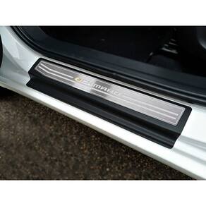 Fabricado em aço inox 304 o kit soleiras, vinil, pedaleiras e descanso de pé além de ajudar a proteger o local onde há o desgaste devido o calçado ficar o tempo todo esfregando, deixará o interior do veículo personalizado e com muito mais estilo.
