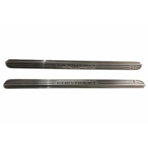 Soleiras de Inox para Chevrolet C10 PerformanceV8 Par de Soleiras de fabricação em Inox; Gravação em baixo relevo em CNC com acabamento escovado de alto padrão; Compatível com todos os anos e modelos da Chevrolet C10 sem adaptação ou seja, plug and play; Alto padrão de acabamento.