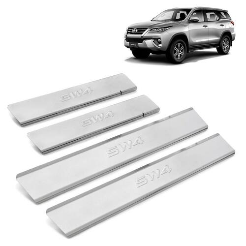 Proteja seu carro com a Soleira Inox Cromada Alto Relevo para Hilux Sw4 2020. Feita em aço inoxidável de alta qualidade, essa soleira é resistente e durável. Possui maior cobertura da área das soleiras, protegendo contra riscos e arranhões. O corte e o escrito em alto relevo dão um toque personalizado ao seu carro. Fabricada sob medida, possui fixação por fita dupla face. Compatível com a Toyota Hilux Sw4 2016 até 2022. Acompanha 02 soleiras dianteiras e 02 soleiras traseiras. Adquira já a sua e tenha um carro protegido e com um visual esportivo. Garantia de 03 meses contra defeitos de fabricação. Imagens ilustrativas. Marca: Texas 4X4