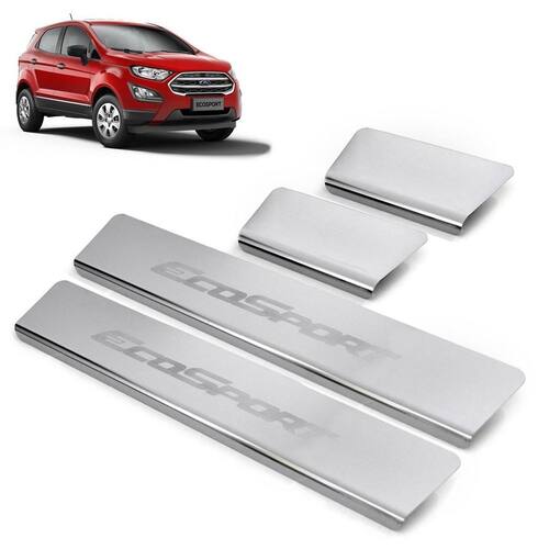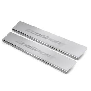 sobre o produto: pelo fato de ser produzida em aço inoxidável, esta soleira é super-resistente e não enferruja. A soleira de porta protege seu carro contra riscos, além de proporcionar um visual esportivo para o automóvel, pois é personalizado e fabricado sob medida para cada veículo com alto padrão de tecnologia e matéria prima. Especificação técnica: alta resistência. Rigoroso controle de qualidade. Maior cobertura da área das soleiras. Corte e escrito em alto relevo. Identificação do modelo de cada soleira. Não deixa rebarba por ser cortado a laser. Fabricado em aço inox de 1mm de alta qualidade. Fixação por fita dupla face, a melhor do mercado. Tamanho dianteira: 46 cm x 8 cm cxa . Tamanho traseira: 18 cm x 8 cm cxa . Conteúdo da embalagem: 02 soleiras dianteiras. 02 soleiras traseiras. Compatível com: ford ecosport 2013 à 2021 compatível para todas as versões e cabines