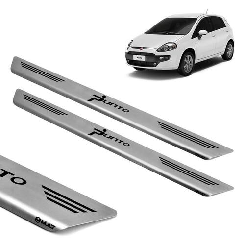 pelo fato de ser produzida em aço inoxidável, esta soleira é super-resistente e não enferruja. A instalação é fácil, e pode ser feita em casa sem nenhum problema. A fixação é personalizada, é feita com fita 3m especial, que não altera a espessura do produto, garantindo assim excelente durabilidade sem causar danos ao seu veículo. A soleira de porta protege seu carro contra riscos, além de proporcionar um visual esportivo para o automóvel, pois é personalizado e fabricado sob medida para cada veículo com alto padrão de tecnologia e matéria prima. Especificações: alta resistência. Rigoroso controle de qualidade. Maior cobertura da área das soleiras. Corte e gravação a laser. Identificação do modelo de cada soleira. Não deixa rebarba por ser cortado a laser. Fabricado em aço inox escovado de 0,6mm de alta qualidade. Fixação por fita dupla face 3m, a melhor do mercado. Tamanho dianteira : 50 cm x 3,5 cm cxa . Conteúdo da embalagem: 02 - soleiras dianteiras. Compatível com: fiat punto 2007 à 2012 compatível para todas as versões