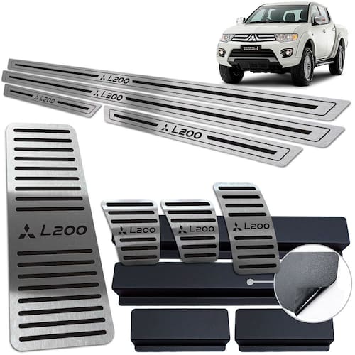 Fabricado em aço inox 304 o kit soleiras, vinil, pedaleiras e descanso de pé além de ajudar a proteger o local onde há o desgaste devido o calçado ficar o tempo todo esfregando, deixará o interior do veículo personalizado e com muito mais estilo.