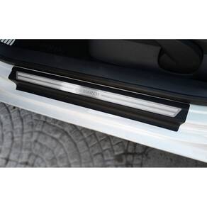 Fabricado em aço inox 304 o kit soleiras, vinil, pedaleiras e descanso de pé além de ajudar a proteger o local onde há o desgaste devido o calçado ficar o tempo todo esfregando, deixará o interior do veículo personalizado e com muito mais estilo.