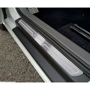 Fabricado em aço inox 304 o kit soleiras, vinil, pedaleiras e descanso de pé além de ajudar a proteger o local onde há o desgaste devido o calçado ficar o tempo todo esfregando, deixará o interior do veículo personalizado e com muito mais estilo.