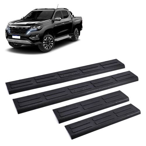Especificações: Produto na cor preto. Fabricadas em plástico injetado. Fácil Instalação. Textura Antiderrapante. Fixação por fita 3m dupla face. Possui 4 Peças. Medidas da soleira dianteira: 55,5 Cm X 7 Cm. Medidas da soleira traseira: 34,5 Cm X 7 Cm.