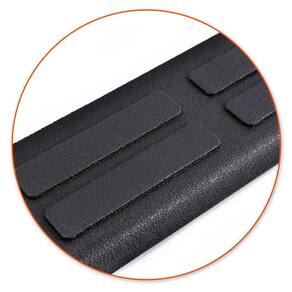 especificações : produto na cor preto fabricadas em plástico injetado fácil instalação textura antiderrapante fixação por fita 3m dupla face possui 4 peças medidas da soleira dianteira: 56 cm x 8 cm medidas da soleira traseira: 45 cm x 8 cm