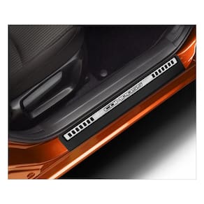 Personalizada com a grafia do seu veículo, a soleira premium foi fabricada em resina poliuretânica Prata, acompanha 4 adesivos Blackout texturizado que cobrem as ondulações da porta, possui flexibilidade e cores uniformes de alta qualidade.