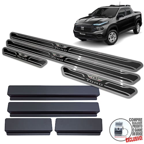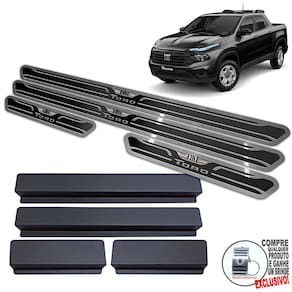 Soleiras Aço Inox Fiat Toro 2022 / Preto Alto Relevo