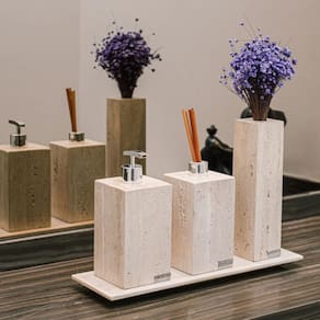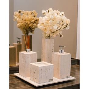 - Durabilidade: Fabricado em Mármore Travertino Romano, que garante longa vida útil.