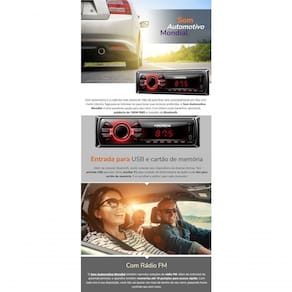 Som Automotivo Mondial Blueth 180w Rms - Entradas Usb Sd Aux Mp3 Som automotivo é a cada dia mais essencial. Não dá para ficar sem, principalmente em dias com muito trânsito. Seja para te informar ou para tocar suas músicas preferidas, o Som Automotivo Mondial é uma excelente opção para seu carro. Com ótimo custo-benefício, apresenta potência de 180W RMS e conexão via Blueth. Quando o trajeto não é só um simples caminho de passagem: som automotivo, o seu som transformando o seu dia-a-dia. Som automotivo Mondial vai com conexão Blueth, entradas USB e SD, entrada auxiliar e MP3. Especificações Técnicas:Potência (em Watts): 180WBlueth: SimRádio FMEntrada USB/Sd cardEntrada AuxiliarReproduz MP3Acompanha um controle remotoDimensões sem embalagens(AxLxP): 5.8 x 18.3 x 15.5 cmDimensões com embalagens(AxLxP): 8.2 x 20.3 x 19.4 cmPeso Líquido: 0.6 KgPeso Bruto: 0.725 Kg Ean: 7899882304282
