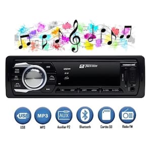 O Som automotivo vem com FM, USB, AUXILIAR P2 para você curti a sua playlista favorita da melhor forma enquanto dirige, Rádio conta com 1 entrada USB frontal e entrada para SD frontal facilitando a troca de musicas, menu intuitivo e equalizador de musica.