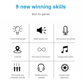 Características destacadas 1. Design leve: confortável e fácil de usar, então você mal consegue sentir o peso de sua cabeça ao jogar, e pode jogar facilmente 2. O design totalmente fechado dos protetores de ouvido pode isolar o ruído externo de forma eficaz e não danificará seus ouvidos por muito tempo. 3. Ajuste de controle de volume humanizado e conveniente, ajuste em tempo real, controle simples. 4. Microfone de redução de ruído, microfone omnidirecional de redução de ruído de alta sensibilidade, maior resposta de frequência, pode reduzir bastante o ruído de fundo. 5. Efeito de iluminação colorido: a luz LED respiratória de 7 cores trará jogos e uma atmosfera musical mais emocionantes. Veja menos