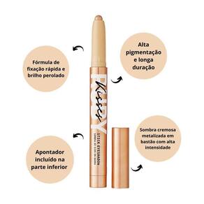A Sombra para Olhos em Barra Stick Eyeshadow possui fórmula de fixação rápida e brilho perolado de longa duração adiciona dimensão e drama aos olhos. Pode usar como sombra, destaque e até delineador. Apontador incluído na parte inferior para ajudar na aplicação fácil e precisa. Sombra cremosa metalizada em bastão com alta pigmentação e intensidade.