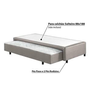 Sommier único, autentico, combinando conforto, qualidade e versatilidade. Confeccionado em Madeira Reflorestada, é um box resistente e possui uma cama auxiliar embutida. Desenvolvido pensando em seu descanso e na qualidade do seu sono. Faz parte da linha Energy Prime. Acompanha Cama Auxiliar: Sim Ambiente Principal: Quarto Cantoneiras: Não Cor: Cinza Cor do Produto: Cinza Itens Inclusos: 1 Sommier Solteiro com Cama Auxiliar Linha ou Coleção: Energy Prime Manual de Montagem e Instalação: https://cdn2.madeiramadeira.com.br/prd/ecoflex/1263095-EF-D99AH000330_d.jpg Material da Estrutura: Madeira Reflorestada Material dos Pés: plástico Necessita Montagem: Não Origem do Produto: Nacional Permite a Utilização de Cama Auxiliar: Sim Peso: 37.25 Recomendações de Uso, Manutenção e Limpeza: Na limpeza não utilizar produtos químicos e abrasivos, usar apenas um pano umedecido, para garantir a maior durabilidade do móvel. Revestimento da Base Box: 69% Polipropileno e 31% Poliéster Tamanho da Cama Auxiliar: 77x172x23cm