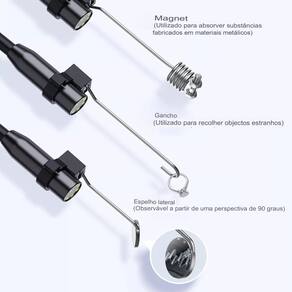Conteúdo da Embalagem: 01 Sonda Endoscópica Profissional 1080p 01 Cabo de 10 m com Câmera Integrada 01 Gancho de Câmera 01 Espelho de Câmera 01 Ímã Magnético de Câmera 03 Fivelas 01 Cabo USB-C para Carregamento 01 Manual de Instruções em Português