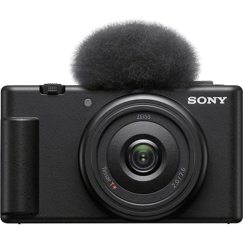 Sony ZV-1F é uma câmera de bolso com um sensor grande de 1" e uma lente grande angular equivalente a 20 mm. A câmera permite que você tire uma selfie em grupo com uma visão ampla do cenário de fundo e coloque tudo no quadro, mesmo com o braço estendido.
