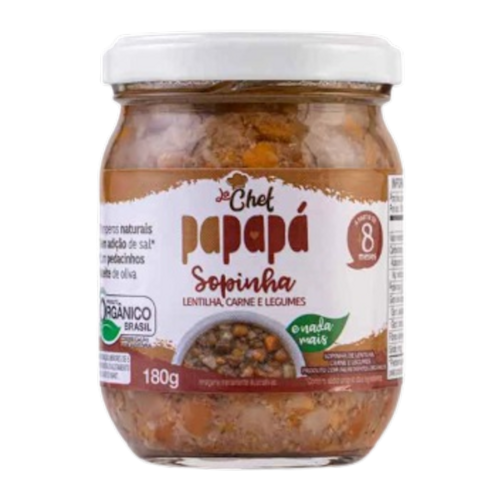 A Sopinha em pedaços Lentilha, Carne e Legumes Orgânica Papapá faz parte da nossa linha de refeições: La Chef, desenvolvida a partir das receitas exclusivas da Chef e Mãe, Luana Wojciechowski, que fazem a junção perfeita entre qualidade, praticidade e o carinho materno.