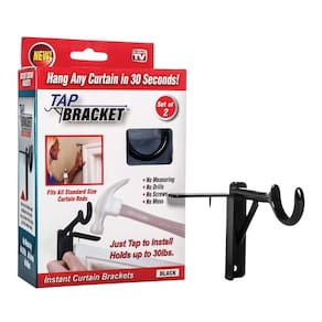 Soporte Spark Innovators negro para barra de cortina sin taladro de Hang Hero - Instalación fácil sin necesidad de taladro - Visto en TV - Juego de 2 - Estos soportes para barra de cortina sin taladro se instalan en segundos. **Es indispensable que la ventana tenga molduras de madera con al menos 1.27 cm de profundidad.** - Usa estos soportes fáciles para cortinas en cualquier tamaño de ventana - Compatible con todas las barras de cortina estándar de hasta 3.18 cm - Fabricados con acero reforzado, estos soportes para barra de cortina son duraderos y fáciles de usar - Puedes esperar ningún daño a tus paredes con estos soportes de instalación rápida