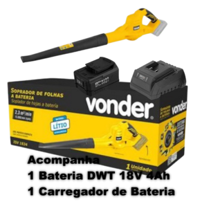 Conteúdo da Embalagem : Produto composto de 1pç Soprador de folhas 18V ISV1834 + 1 Bateria 18V lítio 4 Ah IBD 1804 DWT linha intercambiável + 1pç Carregador de Bateria DWT