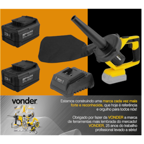 Ideal para a limpeza de quintal e pequenas áreas em trabalhos de sucções leves. Uso indicado após o corte de gramas, soprar folhas secas e/ou aspirar pequenos detritos. Não acompanha bateria e carregador.