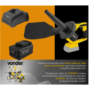 Ideal para a limpeza de quintal e pequenas áreas em trabalhos de sucções leves. Uso indicado após o corte de gramas, soprar folhas secas e/ou aspirar pequenos detritos. Não acompanha bateria e carregador.