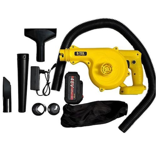 Itens Inclusos no Kit: - 1x Soprador e Aspirador; - 1x Saco Coletor; - 1x Cano Extensor; - 1x Tubo Extensor; - 2x Adaptadores de Encaixe; - 1x Bocal de Sucção Estreito; - 1x Bocal de Sucção Largo em T; - 1x Carregador; - 1x Bateria 48V; - 1x Maleta para Transporte.