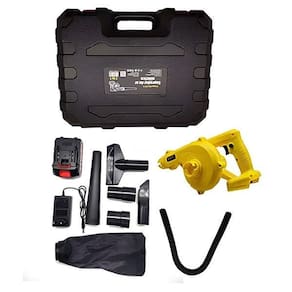 Especificações Técnicas: - materiais: Plástico e Componentes Eletrônicos; - Potência: 2200W; - Velocidade sem carga: 0-20500 r/min; - Volume de ar: 3.8 m/min; - Funções: Soprador e aspirador sucção + ar ; - Bateria: 48VF.