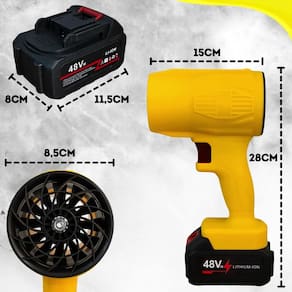 Compacto, leve e fácil de transportar, o soprador vem com maleta resistente para organização, além da bateria de 48V recarregável, garantindo maior autonomia e liberdade de uso sem depender de fios.
