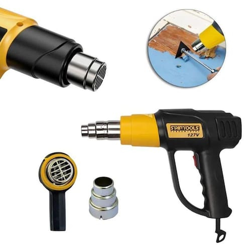 Soprador Térmico 127v com Bico Removível 2000w até 650C Soprador Térmico 127v com Bico Removível 2000w até 650C ===================================== Potência, segurança e versatilidade em uma só ferramenta Potência de 2000w é ideal para ou doméstico. Com controle de temperatura em dois níveis, ele alcança até 650C, sendo perfeito para moldar plásticos, remover tintas e adesivos, secar pinturas, entre muitas outras aplicações. Fabricado com motor de dupla isolação, oferece maior segurança ao operador. Seu design tipo Ferramenta de aplicação com empunhadura ergonômica garante conforto no uso contínuo. Leve e eficiente, é a escolha certa para quem busca desempenho com ótimo custo-benefício. ===================================== Contém: 01 Soprador Térmico Especificações: - Material: Plástico ABS, Nylon e Ferro - Medida: 25,5cm x 20cm x 8,5cm - Cabo com 130cm de comprimento - Potencia nominal: 1500w - Potencia Máxima: 2000w - Motor com Duplo Isolamento - Controle de Temperatura - Potência: 2000w - Voltagem: 127v - Temperatura: até 650C - Cor: Preto com Amarelo ou Amarelo com Preto - Peso: 700 gramas ===================================== Devido à diferença entre monitores e iluminação diferentes, pode haver variação na tonalidade apresentada no anúncio. Medidas muito aproximadas.