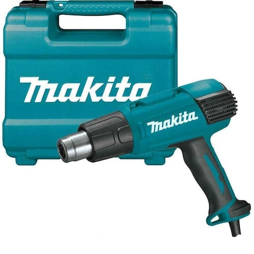 Soprador Termico Makita HG6530VK (220v) CARACTERÍSTICASVisor em LCD com 10 idiomas.3 velocidades eletrônicas.Controle de temperatura.Proteção contra superaquecimento. ESPECIFICAÇÕESPotência220V: 2.000WTemperatura: 50 - 650CDimensões(c x L x A): 257 x 85 x 206mmPeso: 0.72kg ITENS QUE ACOMPANHAMBico e maleta. Imagens meramente ilustrativas