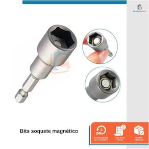CARACTERÍSTICAS TÉCNICAS: Material: Aço cromo vanádio Medidas: 6,35mm - 1/4 diâmetro do encaixe x 65mm comprimento Modelo: Bits soquete magnético Tipo: Hexagonal tipo canhão Marca: Starfer Ref.: 3480259 Ean: 7891638054007
