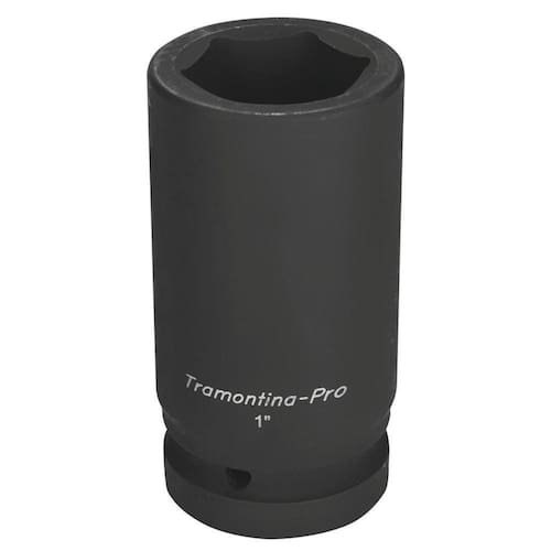 Soquete De Impacto Sextavado Longo Em Aço Cromo Molibdênio 36 Mm - Encaixe 1'' Tramontina Soquete de impacto sextavado longo em aço cromo molibdênio 36 mm - Encaixe 1 Tramontina - Os soquetes de impacto da Tramontina PRO são produzidos com sistema Hyper Drive que melhora o acoplamento do produto ao parafuso ou porca, reduzindo as tensões geradas no aperto e prolongando a sua vida útil. Escolha o tamanho e perfil ideal para a sua necessidade e mãos à obra. Maior resistência, conforto e segurança em suas mãos.OrientaçõesForjado em aço cromo molibdênio e temperado. Acabamento fosfatizado. Perfil Hyper Drive (de cantos arredondados). DIN 3129. Um grande avanço na produção dos soquetes é a introdução do conceito Hyper Drive. Este novo perfil melhora o acoplamento do soquete na porca ou parafuso, reduzindo as tensões geradas no aperto, prolongando a vida do soquete e do elemento de fixação. Os soquetes são submetidos a testes rigorosos de torque e de dureza para atender a norma DIN 1711-1. Os soquetes de impacto são produzidos com um aço ligado com cromo e molibdênio (Cr-Mo) na composição. Isto garante, após o tratamento térmico, uma maior resistência ao desgaste se comparados aos soquetes normais. Por isso, são os recomendados para a utilização com parafusadeiras elétricas ou pneumáticas. Afrouxar e apertar parafusos sextavados utilizando parafusadeiras pneumáticas. Amplamente utilizado na indústria de montagem e desmontagem de motocicletas. As ferramentas são produzidas e testadas conforme normas específicas.ObservaçõesUse óculos, luvas e outros equipamentos de proteção individual (EPIs) de acordo com a tarefa a ser executada. Selecione o tamanho do soquete conforme a bitola do parafuso ou porca. Para operações com parafusadeiras pneumáticas ou elétricas, use soquetes de impacto. Inspecione os soquetes antes de sua utilização. Soquetes que apresentam trincas ou desgaste excessivo devem ser substituídos. Armazene em local limpo e seco.Características GeraisEAN137891114130768DUN1417891114130765NCM8204.20.00Peso Líquido1,2140 kg.Peso Bruto1,2200 kg.Metragem0,000351 m.Dimensões Embalagem (Compr. X Larg. X Alt.)57x 57x 108 mm.Dimensões Produto (Compr. X Larg. X Alt.)108x 57x 57 mm.Dimensão Extra A56,4 mm.Dimensão Extra B108,0 mm.Dimensão Extra C54,0 mm.Dimensão Extra D36,0 mm.Tamanho36 mm Características Gerais do Produto: Garantia: - 1 Ano